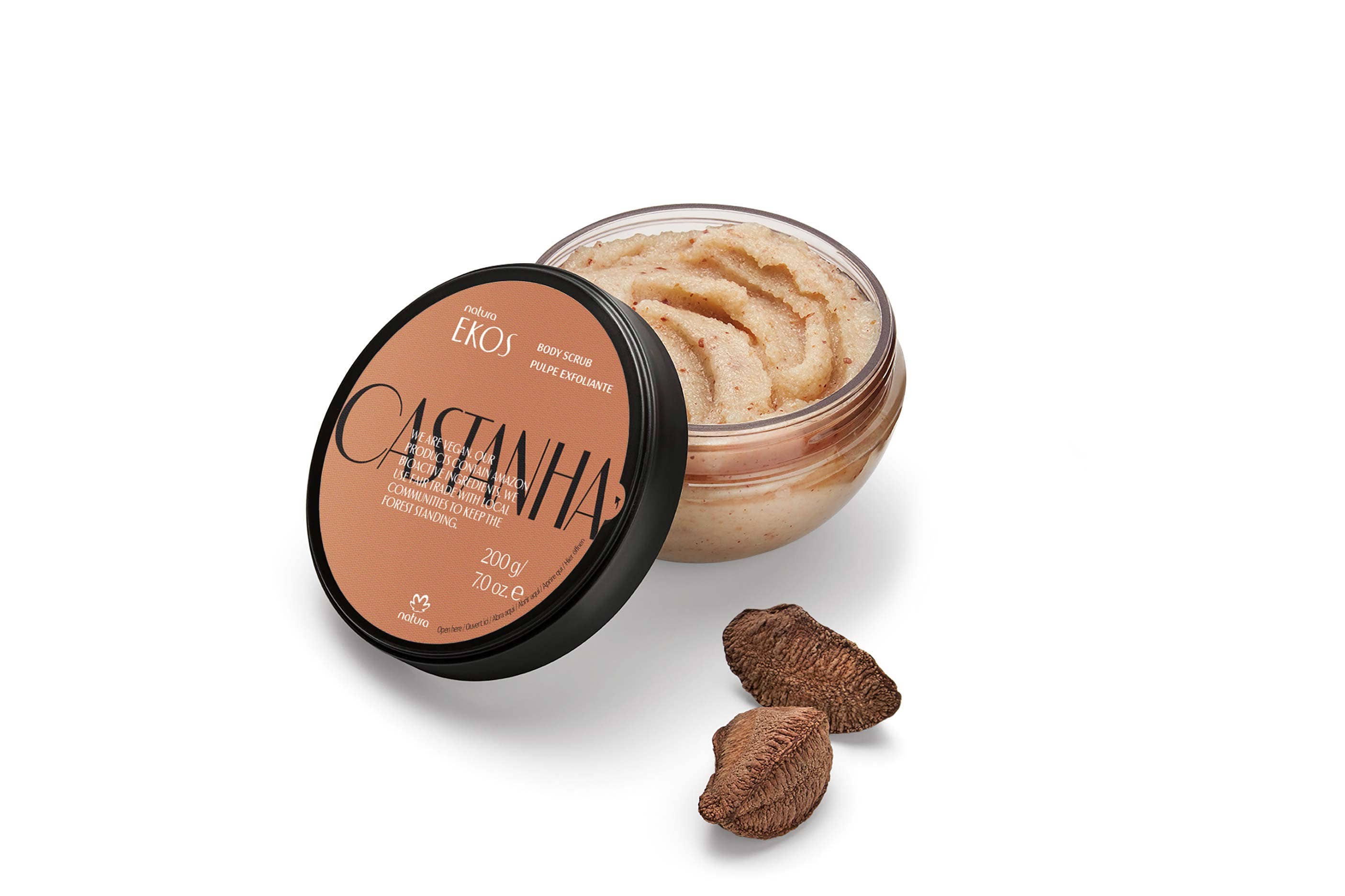 Enriched with Castanha oil, 98% natural and with 0% silicon, this uniquely formulated body scrub gently exfoliates skin and removes dead skin cells using Castanha crude oil and natural ingredients such as cane sugar and flax seed powder. Skin is soft, delicately fragranced and ready for hydration.