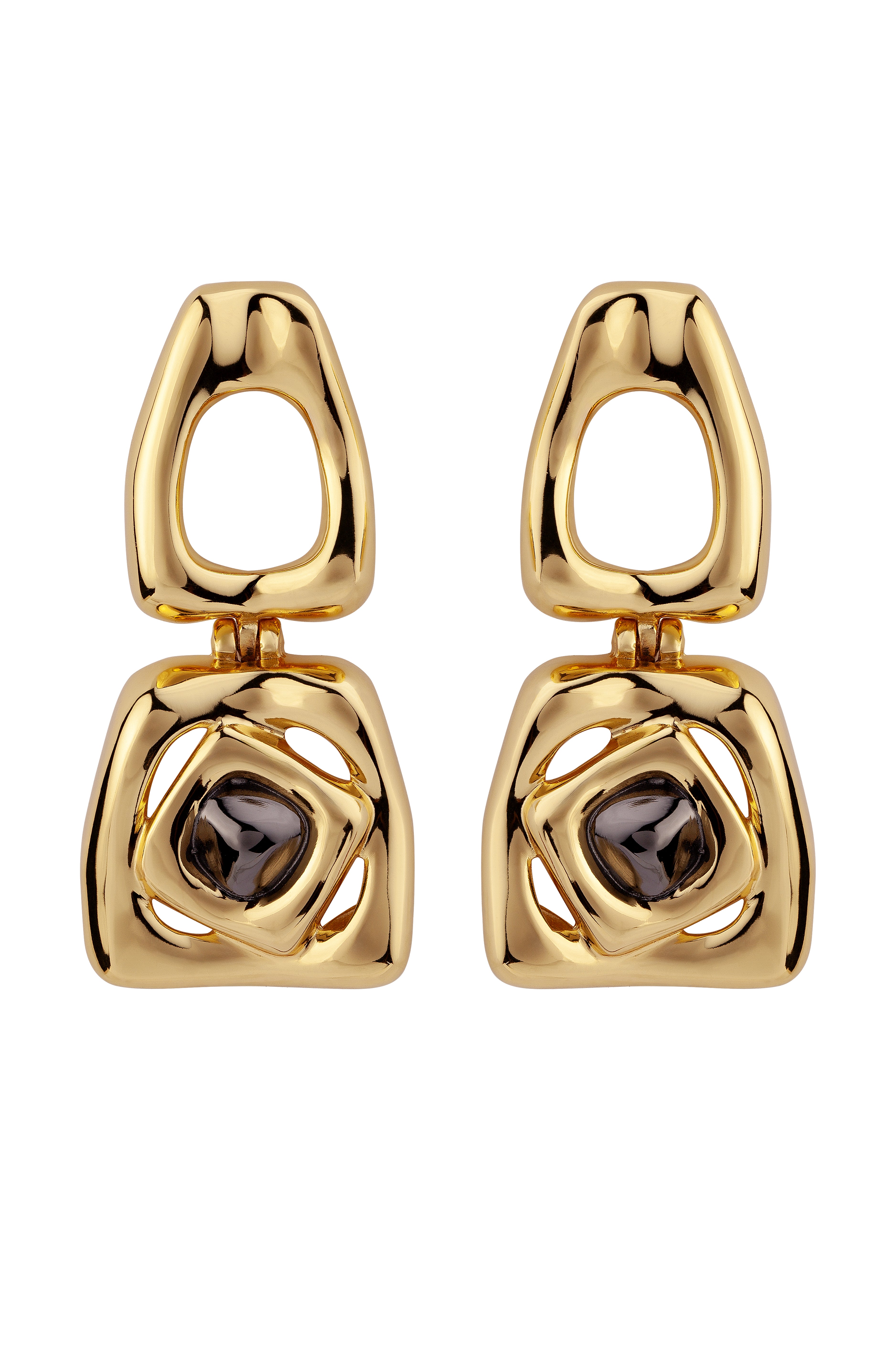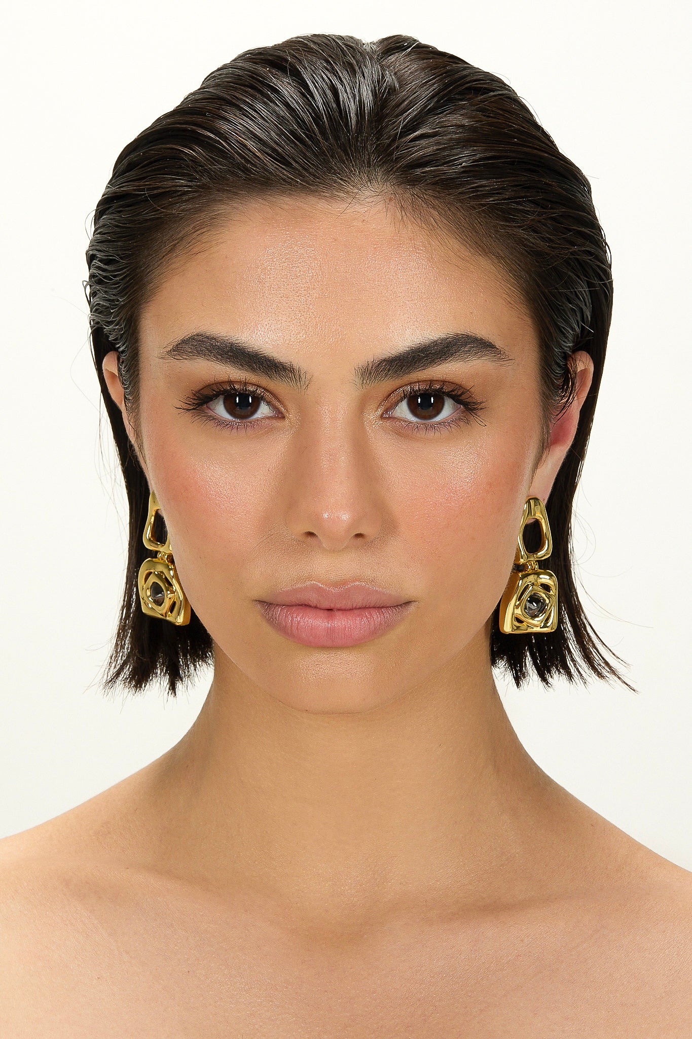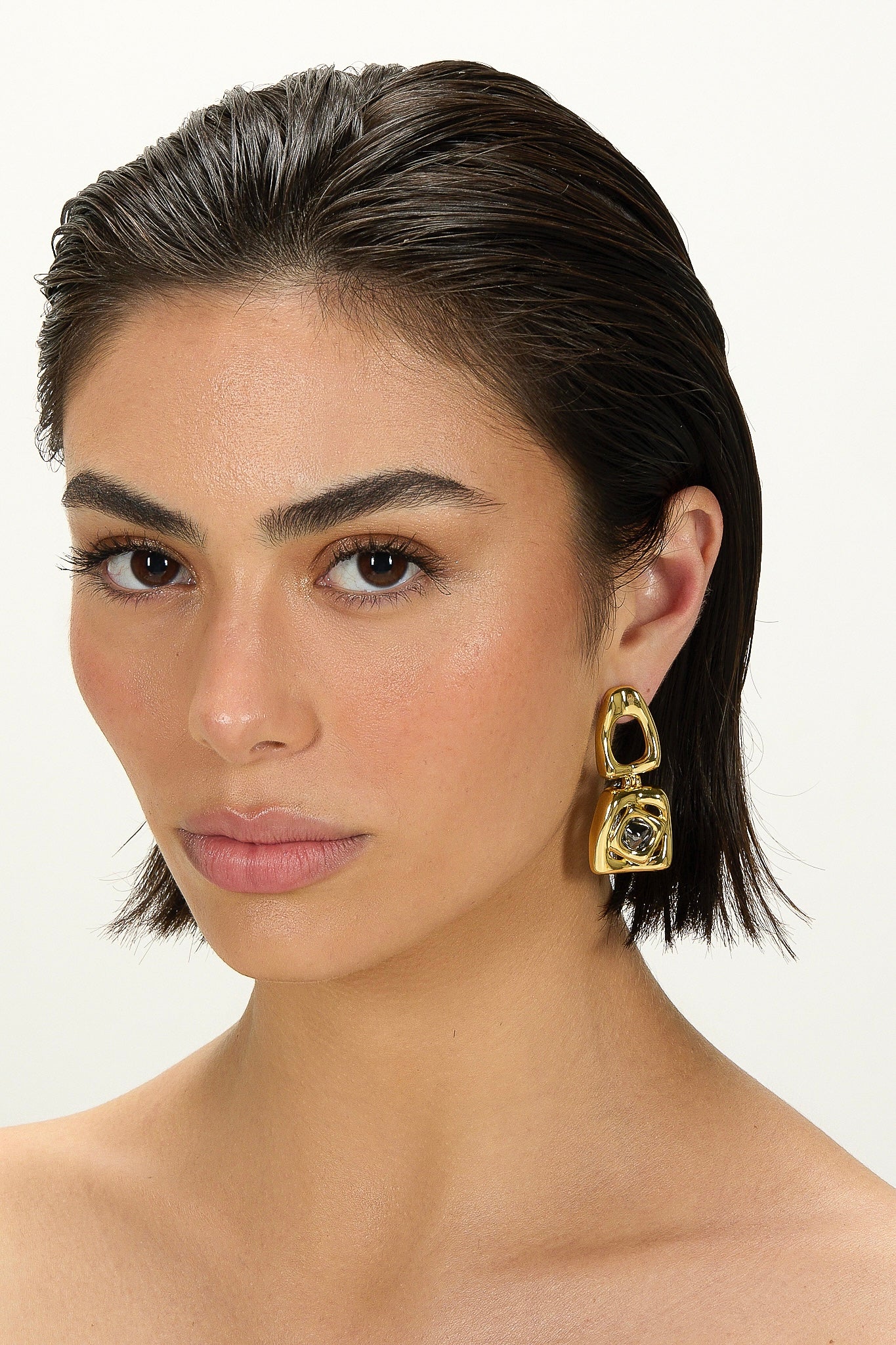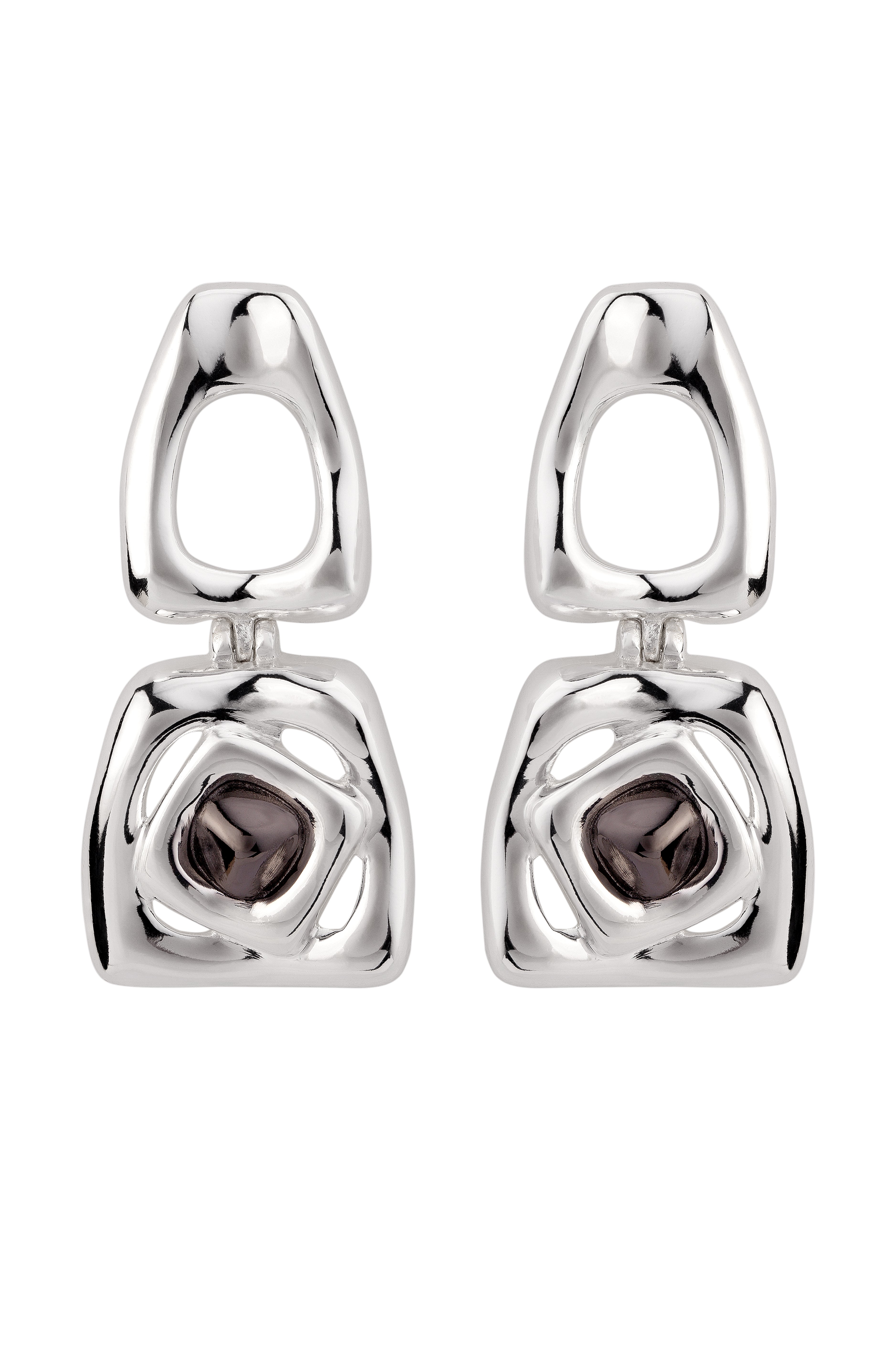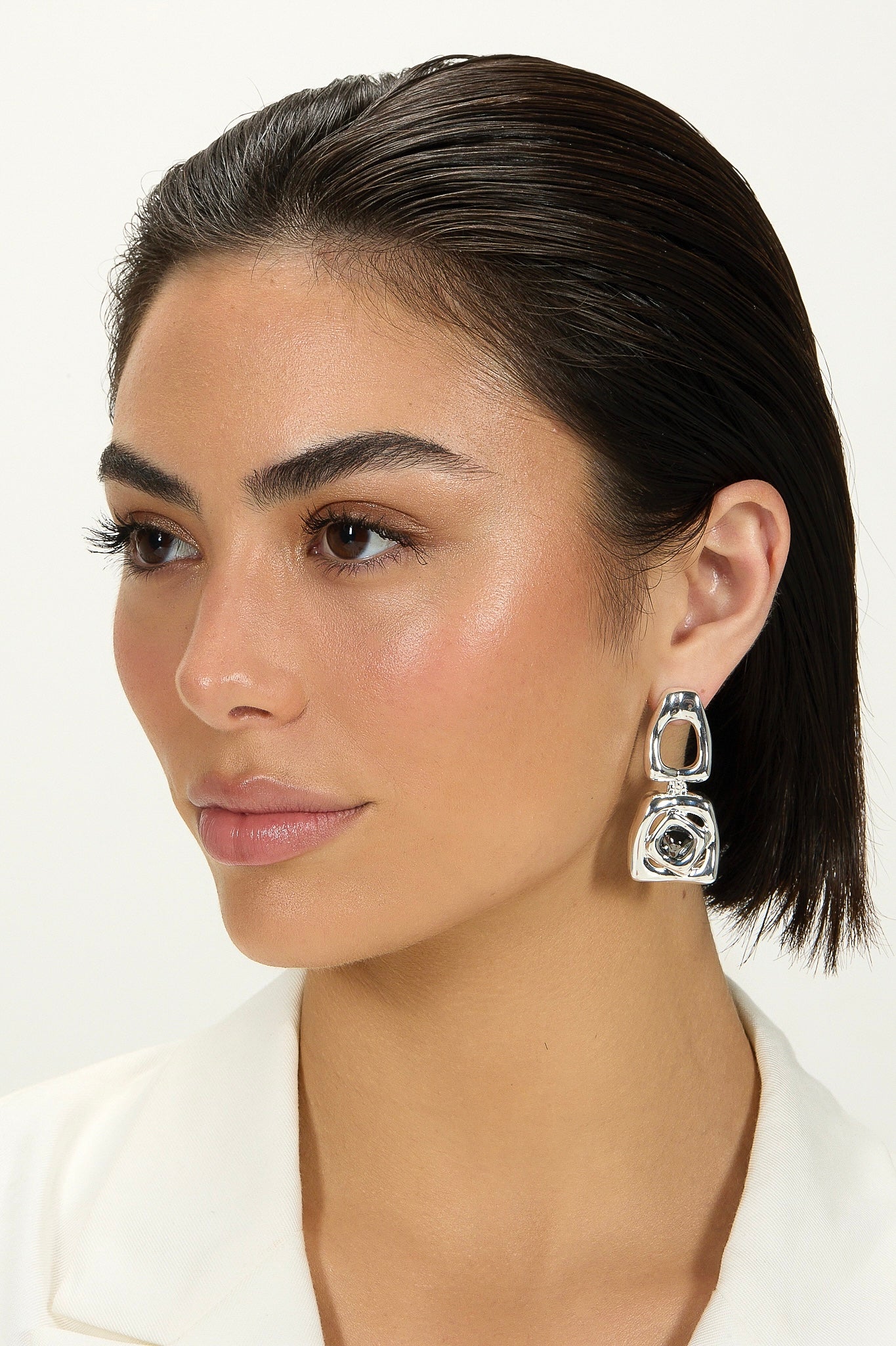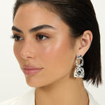 The Large Bicolor Square Revolution Earring is defined by bold geometry and elongated architectural lines, creating a striking expression of form and movement.