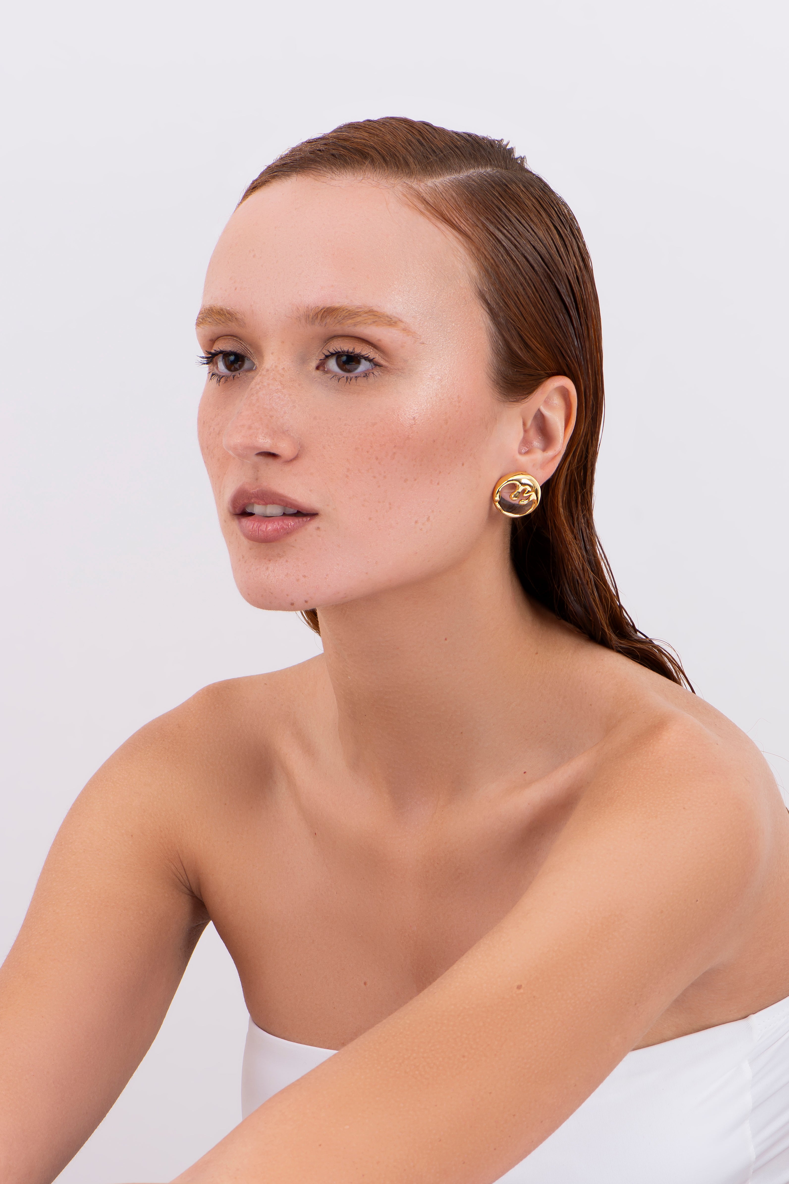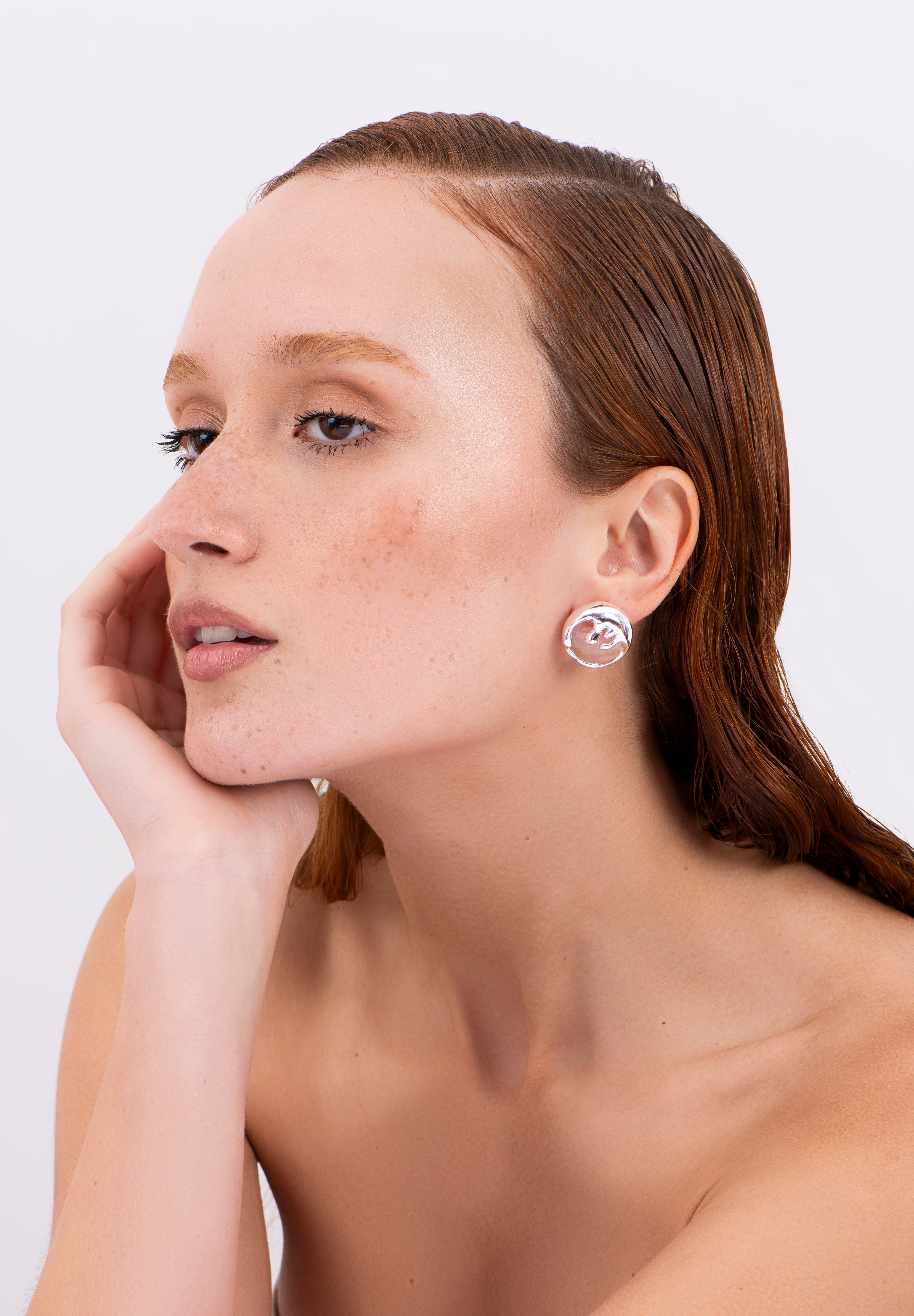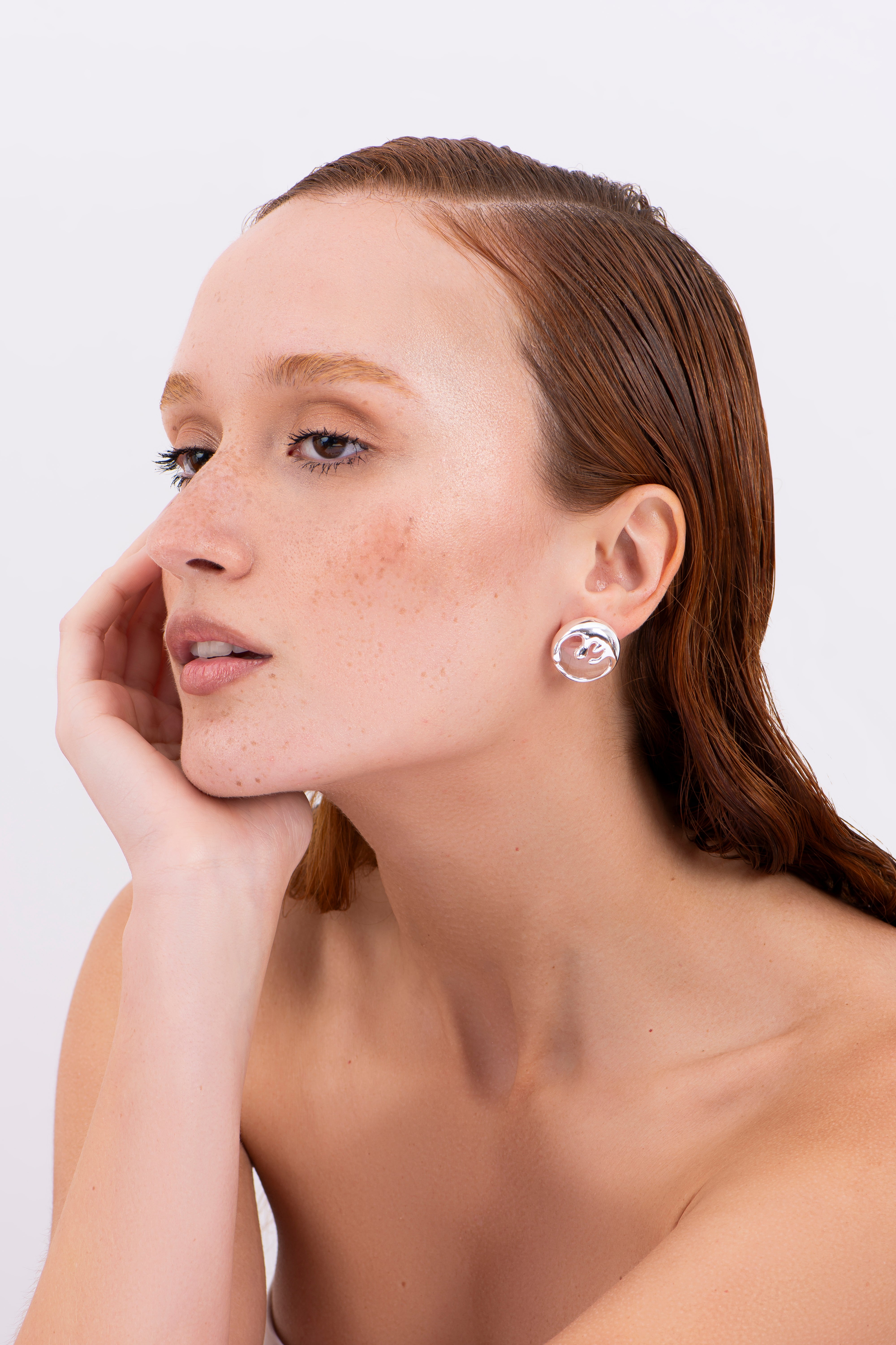 The Medium Immersed Organic Earring draws inspiration from the quiet power of deep waters, where organic forms emerge with fluid strength. Its sculptural design evokes the movement of the sea — like drops and foam suspended on the surface.
